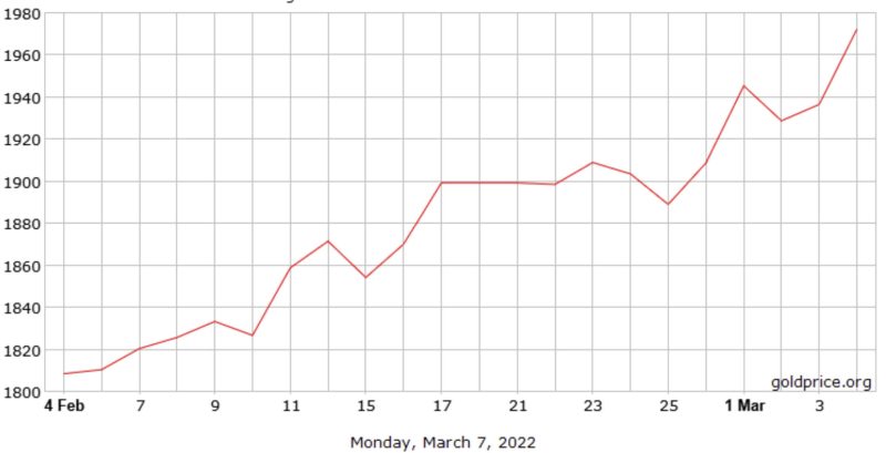 Cijena unce zlata u dolarima u zadnjih mjesec dana, izvor: goldprice.org