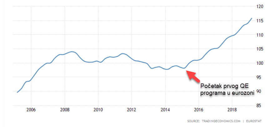 - ECB će svaki mjesec otkupiti obveznice i njihovim vlasnicima isplatiti 20 milijardi eura koje prethodno nisu postojale. Banke, mirovinski investicijski fondovi i ostali prodavači tih obveznica će svaki mjesec na raspolaganje dobiti 20 milijardi eura koje će trebati negdje uložiti. ECB se nada da će od tih ulaganja koristi imati cijelo gospodarstvo eurozone.