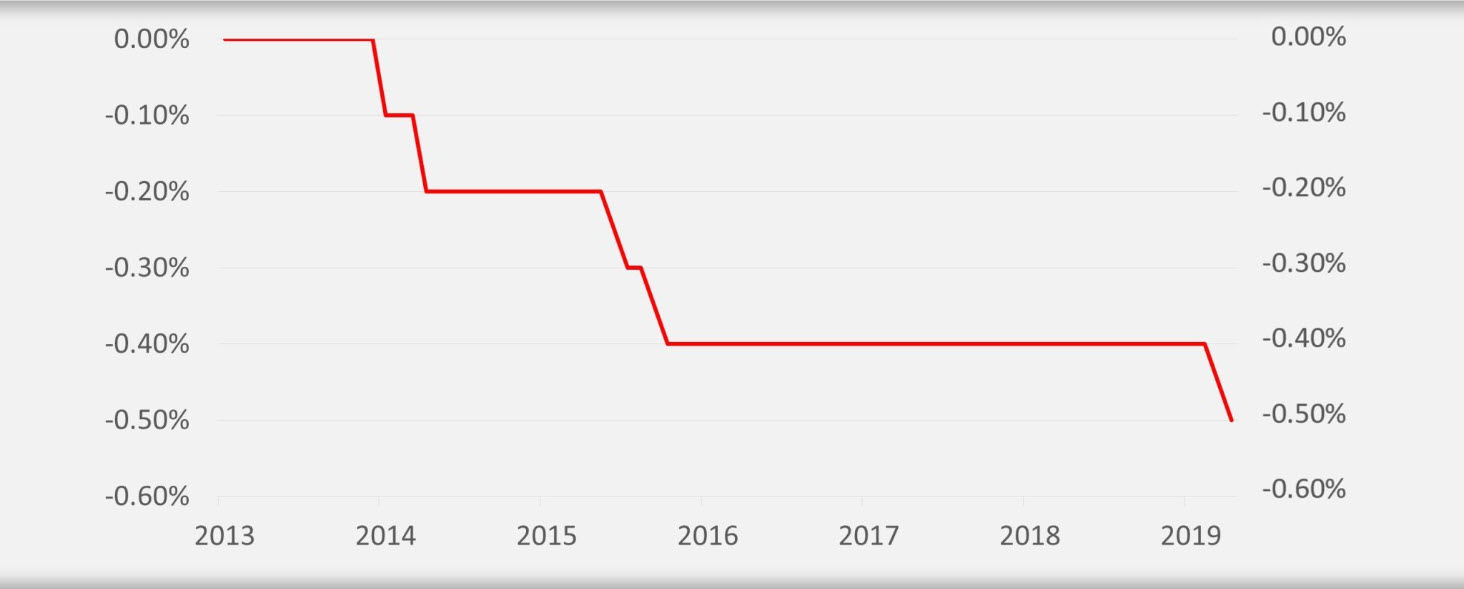 Na redovnom sastanku čelništva Europske centralne banke održanom 12.09.2019. odlučeno je da će kamatna stopa po kojoj komercijalne banke pohranjuju novac kod ECB-a pasti s -0,40% na -0,50% godišnje. Na prvi pogled dodatno spuštanje od 0,10% ne izgleda značajno, no ovaj potez ukazuje na to da situacija nije dobra. Najvažniji bankari u Europi očito nisu zadovoljni gospodarskim rastom (trenutno samo 0,2%) i stopom inflacije (trenutno 1,0%).