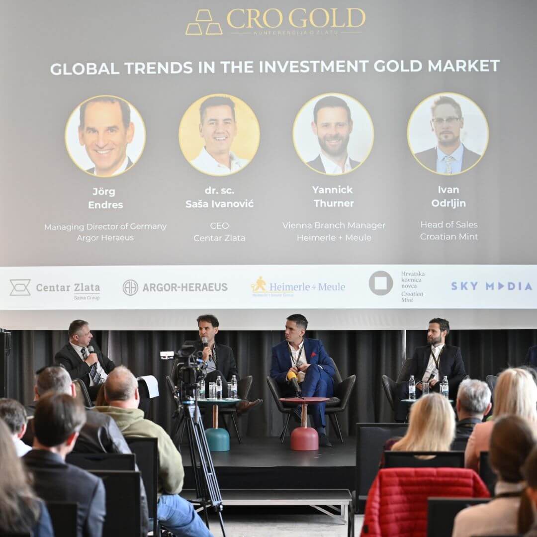 Druga panel diskusija održana je na engleskom jeziku, a tema su bili globalni trendovi na tržištu investicijskog zlata. Sudionici su bili predstavnici kovnica – Jörg Endres iz švicarskog Argor Heraeusa, Yannick Thurner iz njemačkog Heimerle + Meulea te Ivan Odrljin iz Hrvatske kovnice novca, uz Sašu Ivanovića iz Centra Zlata.