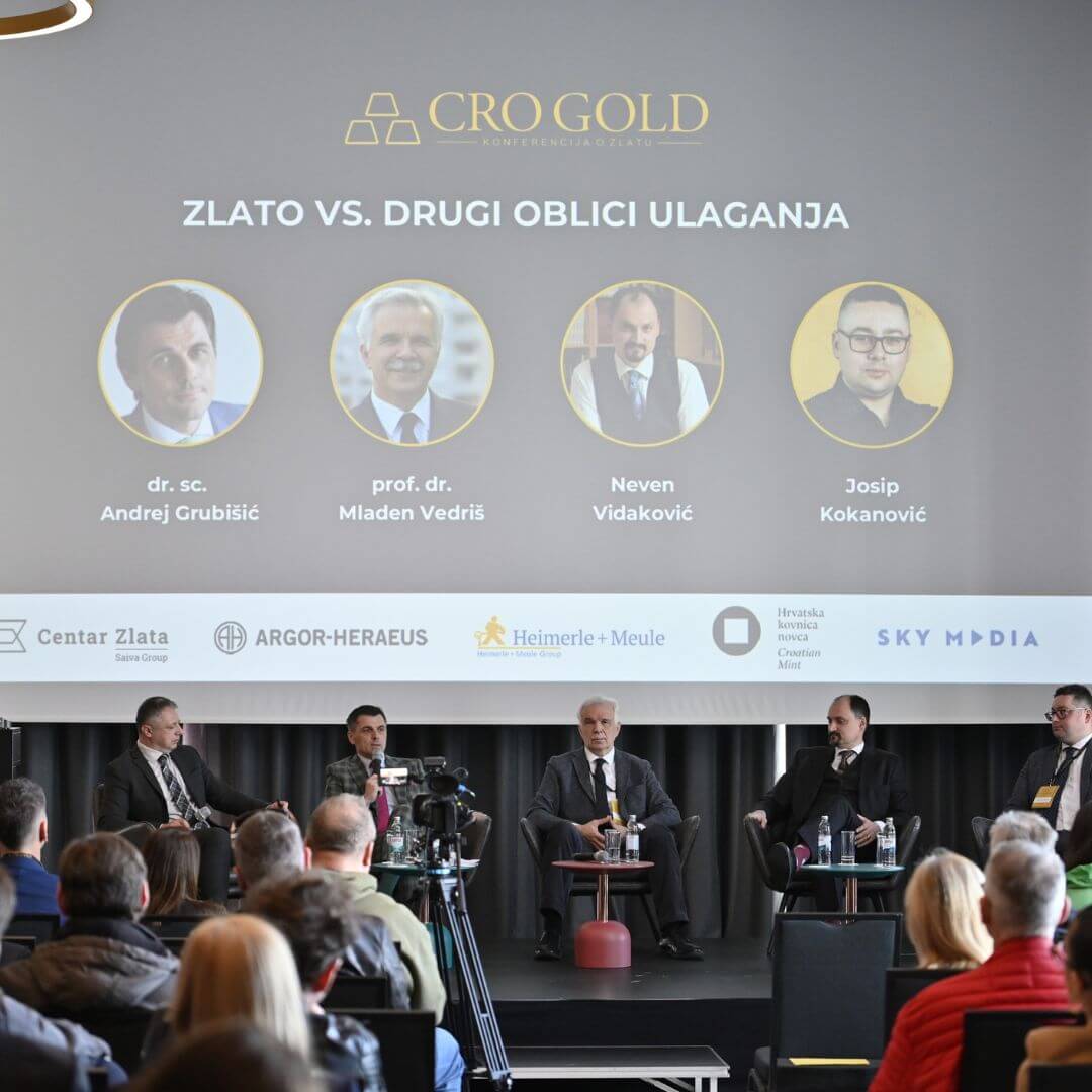 Prva panel diskusija na konferenciji tematizirala je investicijsko zlato u kontekstu drugih oblika ulaganja poput nekretnina, dionica, kriptovaluta, narodnih obveznica i trezorskih zapisa. Na diskusiji su sudjelovali istaknuti domaći ekonomski stručnjaci – Andrej Grubišić, Mladen Vedriš, Neven Vidaković i Josip Kokanović.