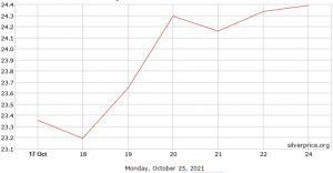 Tijekom petka, cijena srebra je u jednom trenutku dosegla čak 24,84 dolara, no završila je na nešto nižoj spomenutoj razini zbog komentara Jerome Powella, predsjednika američkih Federalnih rezervi o smanjenju kupovine obveznica od strane te institucije kako bi ublažila inflacijska očekivanja.