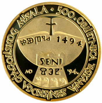 Hrvatska narodna banka izdala je zlatni kovani novac od 5 kuna u povodu 500. obljetnice tiskanja senjskoga glagoljskog Misala u glagoljskoj tiskari u Senju, 1494. – 1994. Prigodni zlatni kovani novac izrađen je prema predlošku za prigodni optjecajni kovani novac od 5 kuna.
