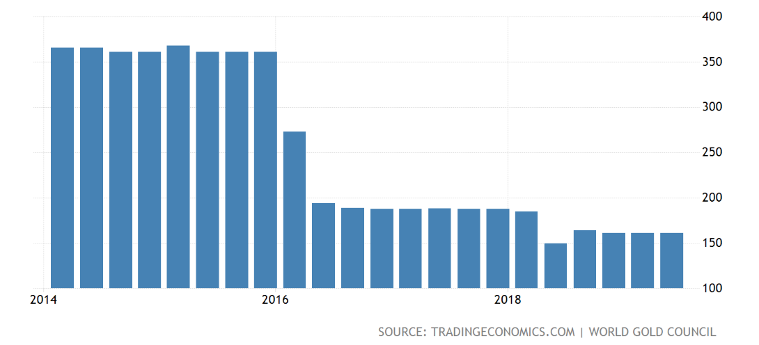 Od ukupno 161 metričke tone zlata koje je ta država posjedovala od početka godine, u posljednja četiri mjeseca je prodano približno 24 tone zlata, za što je dobiveno milijardu i sto milijuna dolara. To nije mali iznos čak ni za vrlo likvidno globalno tržište zlata. Iako je cijena zlata od travnja porasla, vjerojatno bi porasla barem nekoliko postotnih bodova više da nije bilo venezuealnskog zlata.